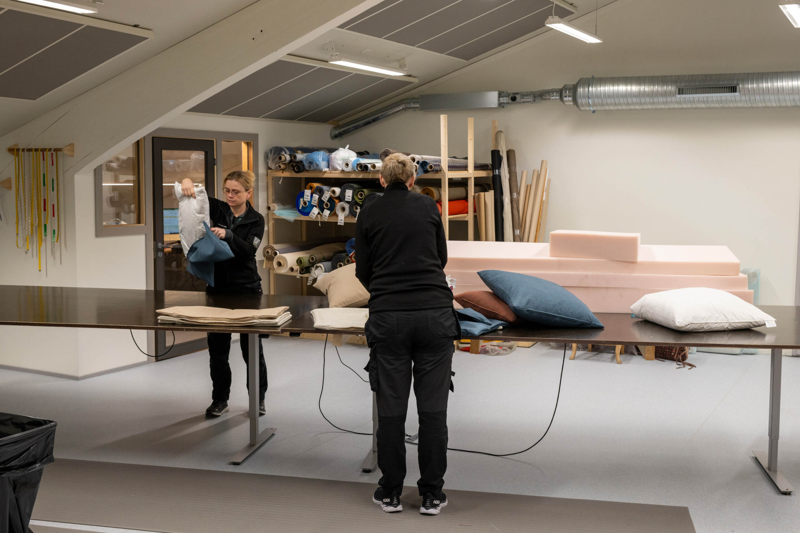 Vår eigen Systugu syr alle typer møbelputer, men kan også trekke opp att dei gamle møblane dine. Møt Hege og Sandra for ein fagprat.